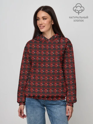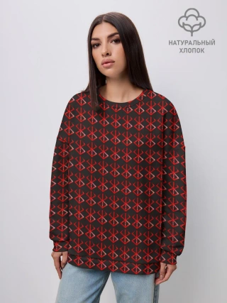 Мужской лонгслив оверсайз хлопок / Красный паттерн