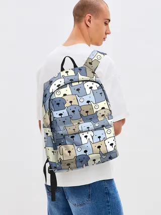 Рюкзак джинсовый / Собачки рисунок паттерном