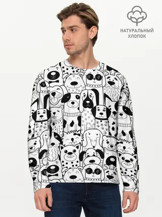 Мужской лонгслив базовый / Собаки черно-белое