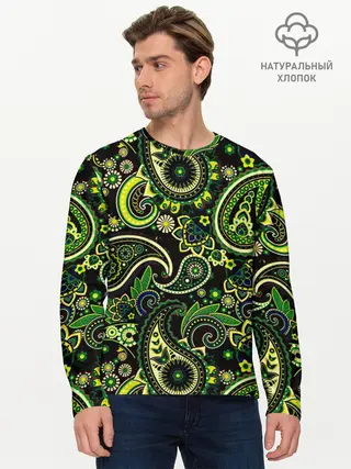Мужской лонгслив базовый / Ярко зеленые славянские узоры