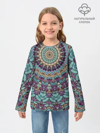Детский лонгслив / Сиренево-голубой калейдоскоп .