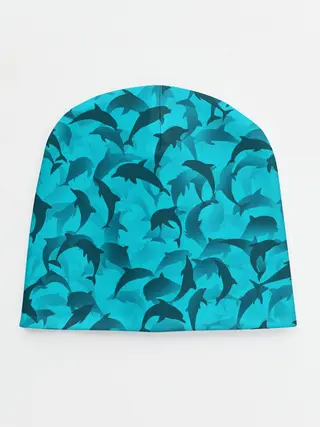 Детская шапка / Синий камуфляж с дельфинами