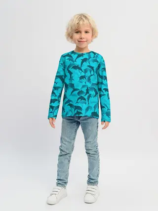 Детский лонгслив / Синий камуфляж с дельфинами