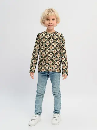 Детский лонгслив / Абстракция из бежевых и зеленых кругов