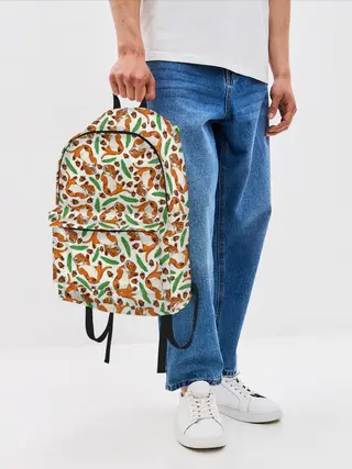 Рюкзак детский / Тигрята, еловые ветки и желуди