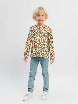 Детский лонгслив / Тигрята, еловые ветки и желуди