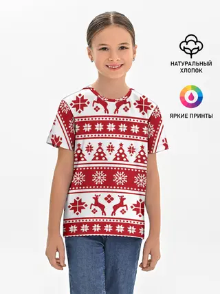 Детская базовая футболка / Новый Год | Олени и снежинки