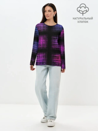 Лонгслив женский. Хлопок / Неоновая абстракция