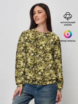 Женская футболка оверсайз / Золотой камуфляж из роз