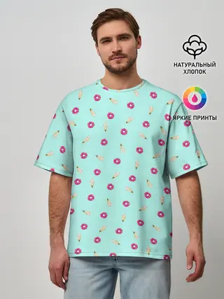 Мужская футболка оверсайз / ПОНЧИК И МОРОЖЕНКА