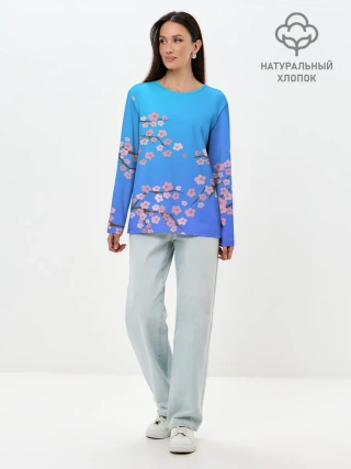 Лонгслив женский. Хлопок / Цветы сакуры