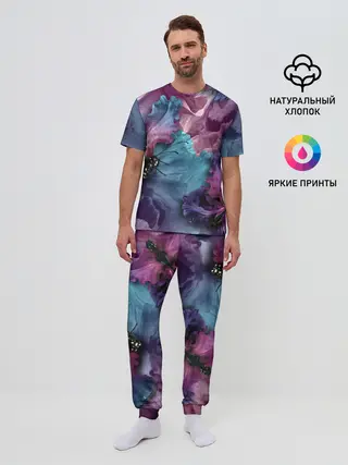 Мужская пижама с брюками / Цветы