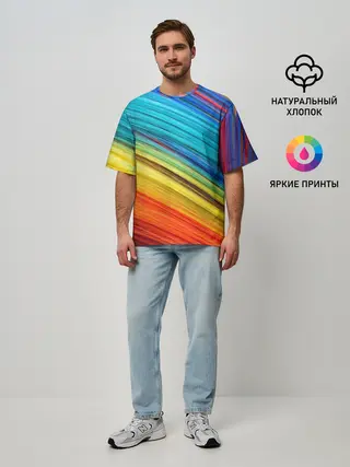 Мужская футболка оверсайз / цветной мех диагональ