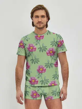 Мужские трусы с футболкой / Пионы на светло зеленом фоне