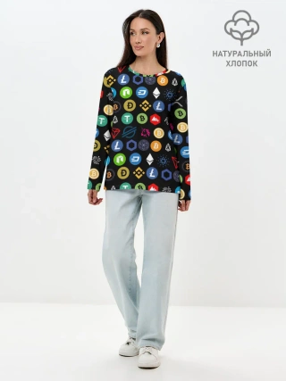 Лонгслив женский. Хлопок / ЛОГОТИПЫ КРИПТОВАЛЮТ | CRYPTOCURRENCIES