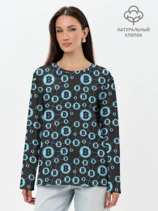 Лонгслив женский. Хлопок / Bitcoin