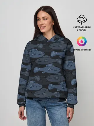 Женская футболка оверсайз / Синие рыбы на темном фоне