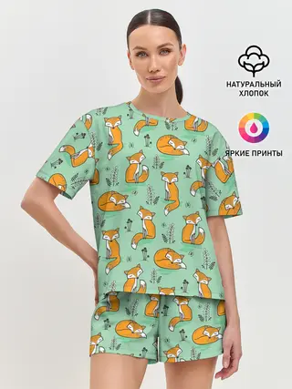 Женская пижама с шортами / Лиса с Грибами