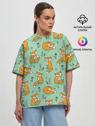Женская футболка оверсайз / Лиса с Грибами