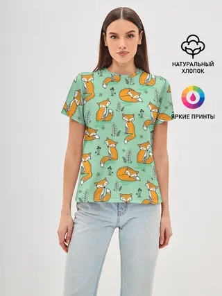 Женская базовая футболка / Лиса с Грибами