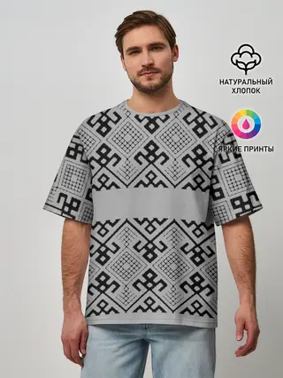 Мужская футболка оверсайз / Русские народные узоры