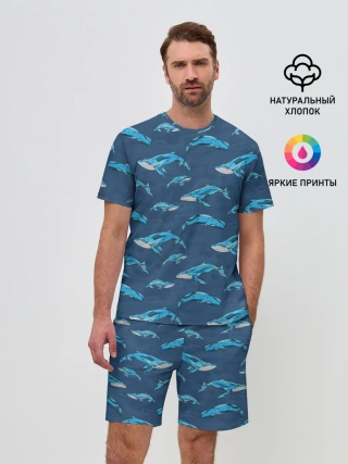 Мужской костюм с шортами / Киты на синем