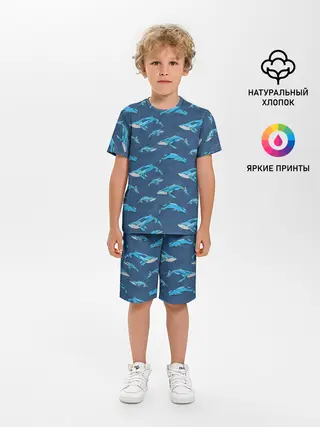 Детская пижама с шортами / Киты на синем
