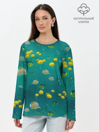 Лонгслив женский. Хлопок / Подводный мир. Рыбки