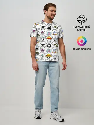 Мужская футболка оверсайз / Веселые Роджеры пиратов Соломенной Шляпы