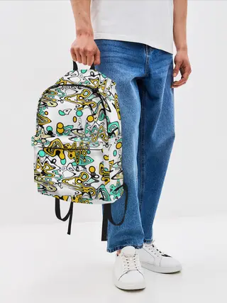 Рюкзак джинсовый / Бирюзово-желтый узор