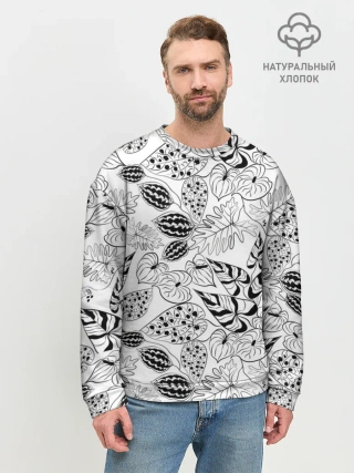 Мужской свитшот базовый / Черно-белый узор Тропики