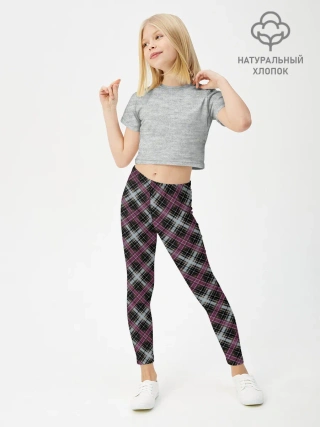 Леггинсы для девочки / Темный серый узор в клетку