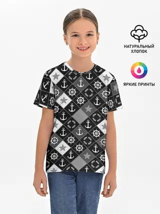 Детская базовая футболка / Черно-белый морской плед