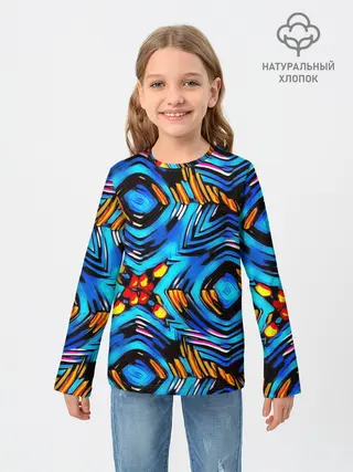 Мужской лонгслив базовый / Желто-синий абстрактный узор