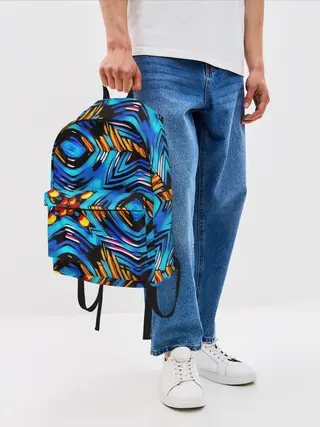 Рюкзак джинсовый / Желто-синий абстрактный узор