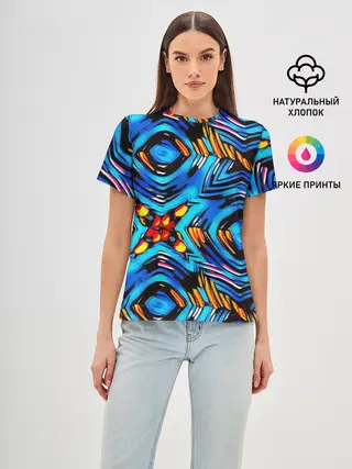 Женская футболка оверсайз / Желто-синий абстрактный узор
