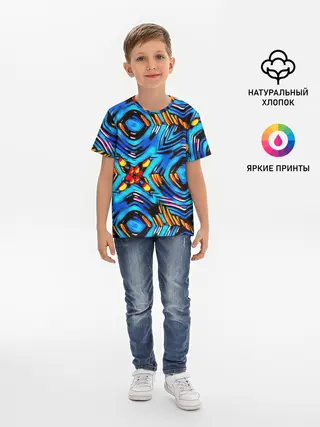 Мужская футболка оверсайз / Желто-синий абстрактный узор