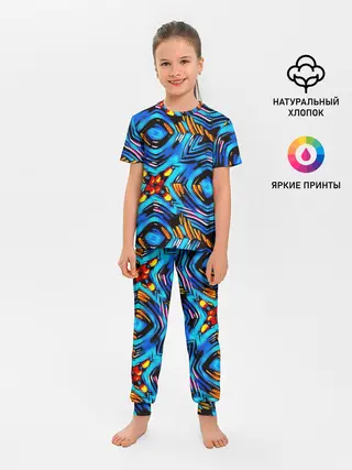 Детская пижама с брюками / Желто-синий абстрактный узор