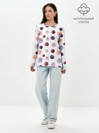 Лонгслив женский. Хлопок / Акварельные сиреневые круги