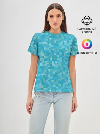 Женская базовая футболка / Бирюзовая пиксель абстракция