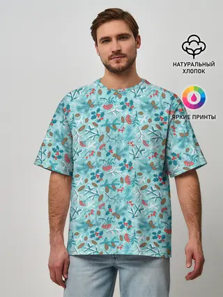 Мужская футболка оверсайз / Зимний Лесной Пейзаж