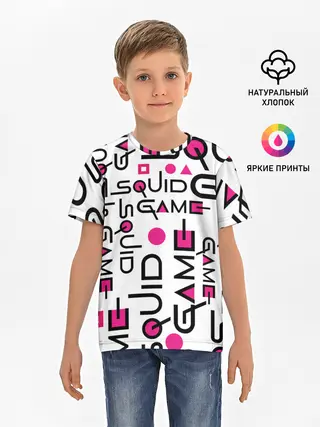 Детская базовая футболка / ИГРА В КАЛЬМАРА УЗОР И ПАТТЕРН ЛОГО