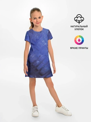 Детское платье / Синие акварельные мазки