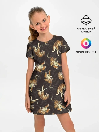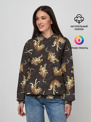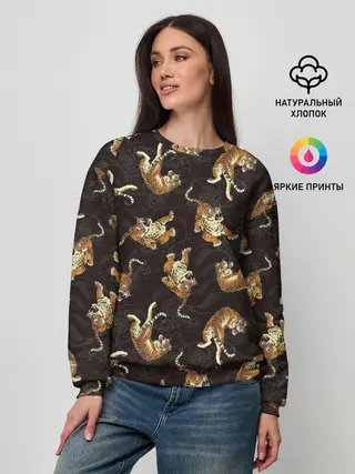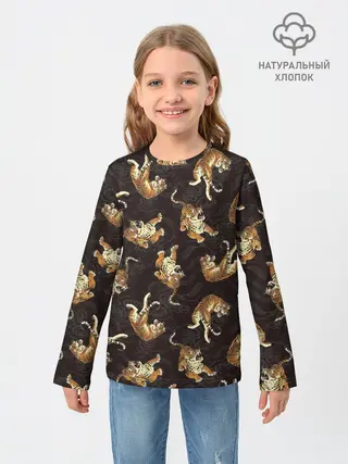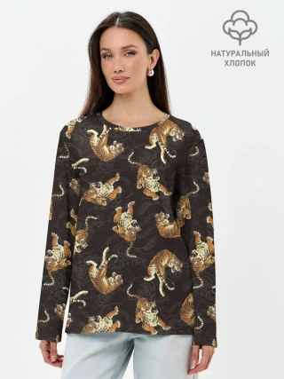 Лонгслив женский. Хлопок / Паттерн Японский тигр