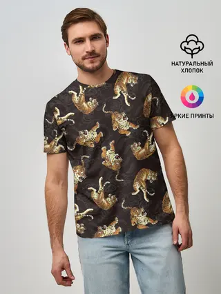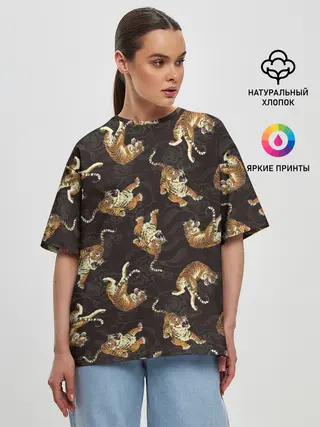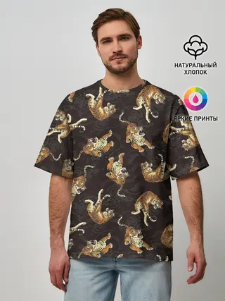 Мужская футболка оверсайз / Паттерн Японский тигр