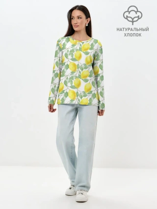 Лонгслив женский. Хлопок / Лимоны 3d