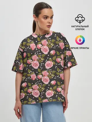 Женская футболка оверсайз / Яркие розовые розы