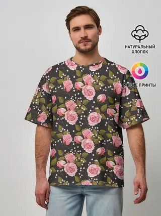 Мужская футболка оверсайз / Яркие розовые розы