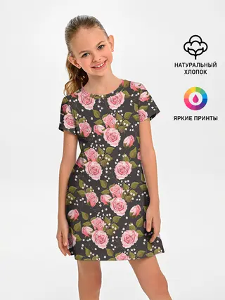 Детское платье / Яркие розовые розы