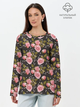 Лонгслив женский. Хлопок / Яркие розовые розы